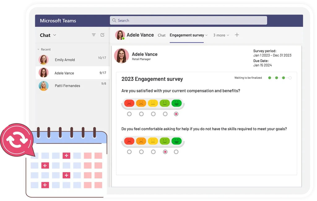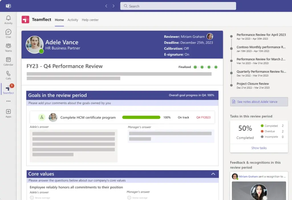 The top-rated performance management solution within Microsoft Teams. Seamlessly incorporate performance management into your daily workflow.